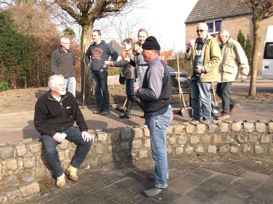 Al verschillende jaren is de groep Natuur van het Dorp van de Toekomst actief om middels burgerparticipatie bepaalde projecten in samenwerking met de gemeente uit te voeren. Op deze wijze zijn er langs de Weizicht- en Steenbakkerijweg bomen en struiken geplant. De leefkuil is hier nu ook een onderdeel van geworden, want het onderhoud liet de laatste jaren te wensen over. Het was een rommelig geheel, overal klimop en onkruid. De gemeente, de dorpsvereniging en de groep Natuur hebben samen met kwekerij Van de Waart een plan van aanpak gemaakt. Dat hield in dat de gemeente de grond plantklaar zou maken. Kwekerij Van de Waart zou daarna samen met de vrijwilligers alles opnieuw aanplanten. In dit plan kon de gemeente zich ook vinden. In week 11 werd begonnen met het wortel- en onkruidvrij maken van de grond. Op 23 maart begonnen we met het aanbrengen van de beplanting. Er moest echter eerst nog het nodige opgeruimd worden, want de grond was gezeefd. We denken dat de zeef nogal grof was, want wij haalden er nog een aanhanger vol takken, stenen, wortels, enz. uit. Die middag waren we met 10 personen waaronder de Dorpswethouder en de Dorpsmanager ( hulde voor hun inzet ). Dat we het niet af kregen werd al snel duidelijk. Besloten werd dan ook de volgende dag verder te gaan vanaf 10.00 uur ’s morgens. Enkelen konden helaas niet. Zodoende waren we met 7 man de rest van de dag bezig om alles gereed te krijgen. Ook het gedeelte voor de leefkuil hebben we zoveel mogelijk opgeschoond en enkele struiken in de open gaten gepland. Hier kwam weer een volle aanhangwagen blad en takken uit. Toen dit ook gereed was konden we terugzien op een geslaagde actie. |